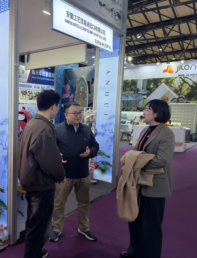 近日,華東進出口商品交易會在上海舉辦。展會期間,中國紡織品進出口商會會長曹甲昌、安徽省商務廳黨組成員、副廳長后其潔、貿發處處長魏潔先后蒞臨我司展位調研指導。