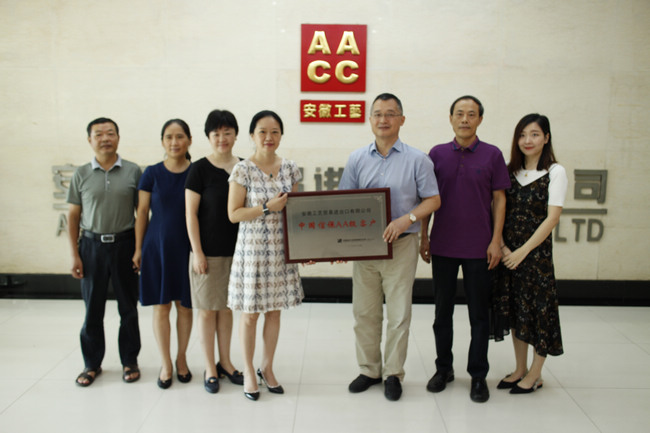 ??? 8月15日上午,中國信保安徽分公司總經理鄧成釗一行向我司授予了“AA級客戶”牌匾,公司薛穎董事長接受授牌。