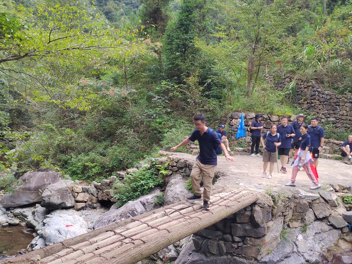 休整一晚后,第二天一早我們便乘車來到了徽杭古道的起點。徽杭古道蜿蜒于崇山峻嶺之間,猶如一條歷史的紐帶,連接著過去與未來。當我們踏上這片古老的土地時,心中都充滿了期待與挑戰。從起點出發,大家邁著堅定的步伐,眼神中透露出對未知旅程的好奇與勇敢。