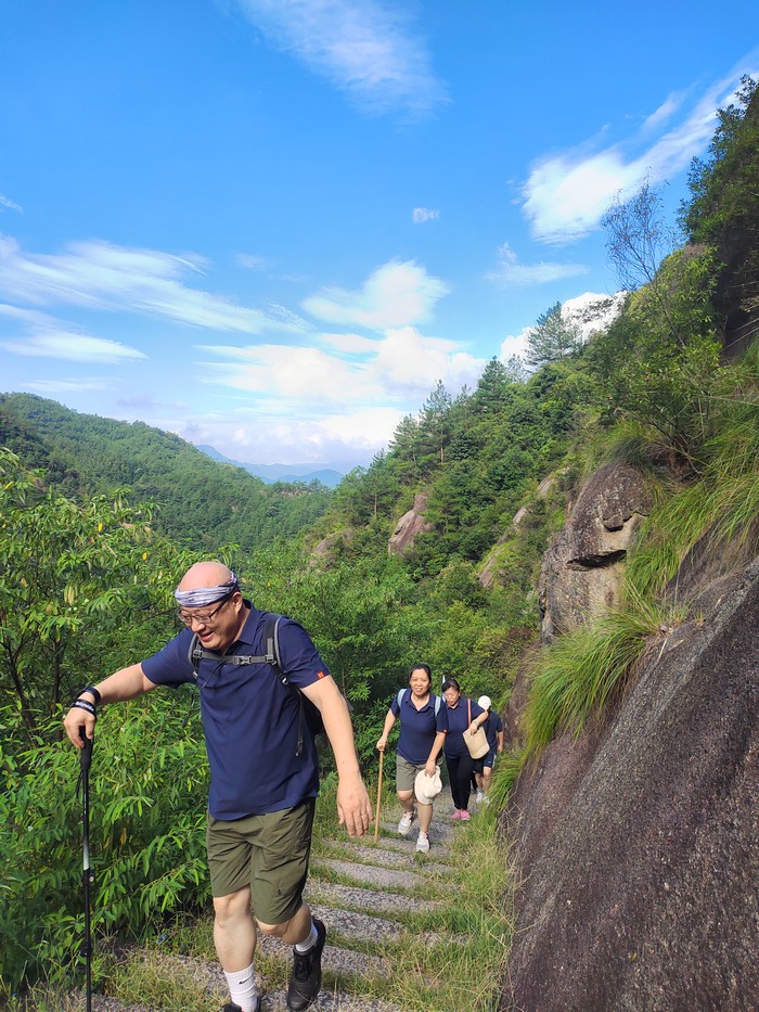 一路上,風景如畫,山巒起伏,綠樹成蔭。但毅行的道路并非一帆風順,陡峭的山坡、崎嶇的小路,都給大家帶來了不小的挑戰。然而,正是在這些困難面前,團隊合作精神開始閃耀出最耀眼的光芒。面對艱險的山路,團隊成員沒有人掉隊。無論是在前方沖鋒的領隊,還是默默陪伴在后方的同事,大家都展現了無私的合作精神。有的同事主動幫助他人背負物品,有的在攀登時伸出援手,相互鼓勵,團結一心。當有同事體力不支時,旁邊的人立刻伸出援手,攙扶著他們繼續前行。一句句鼓勵的話語,如溫暖的春風,吹拂著每個人的心靈。“加油,我們一起走!”“堅持就是勝利!”這些簡單而有力的話語,成為了大家前進的動力。